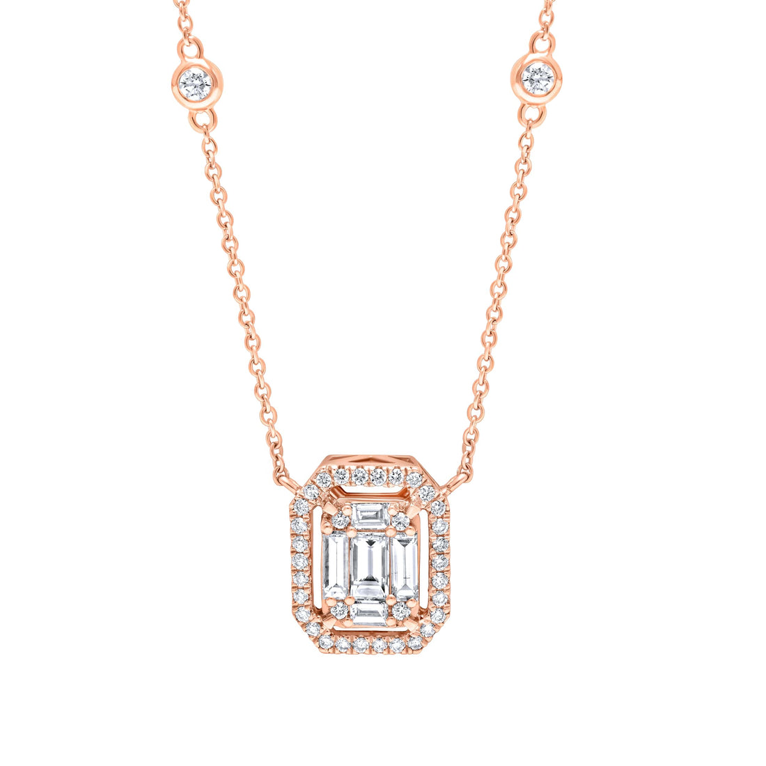 Dolce Mondo introduces the 18K Diamond Necklace "Baguette" in luxurious rose gold. With 2.89 grams...