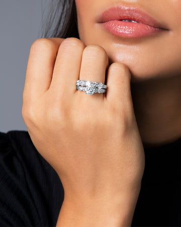This exquisite ring features a brilliant round Lab Grown Diamond at its center, surrounded by...