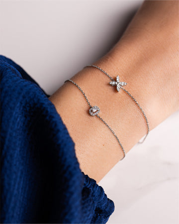 This exquisite 18K white gold bracelet showcases a modern geometric design, highlighted by a stunning...