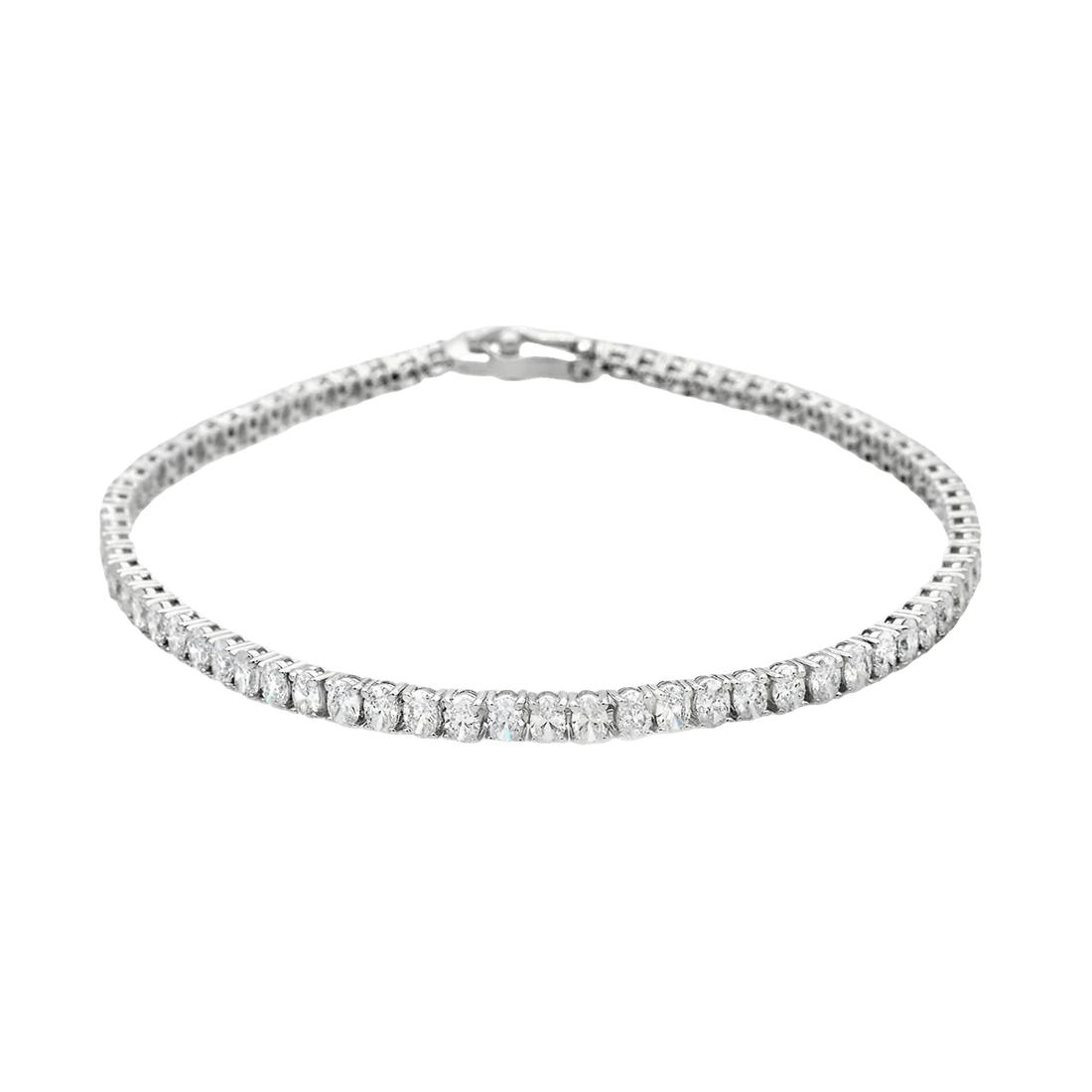 Elegant tennis bracelet crafted in 18K white gold featuring 3.75 carats of sparkling lab-grown diamonds....