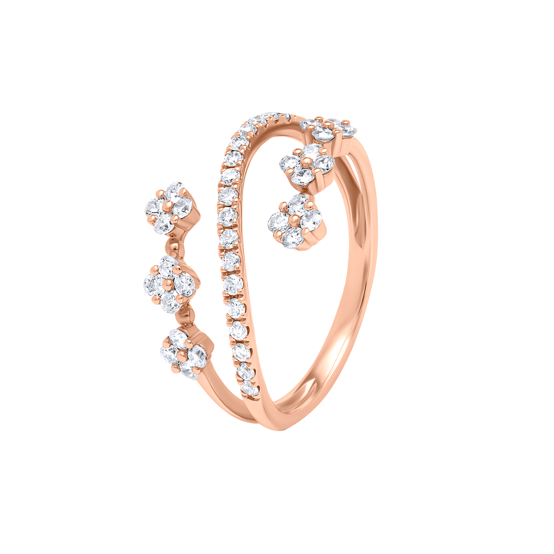 18K Rose Gold Diamond Ring with Double Row Floral Design