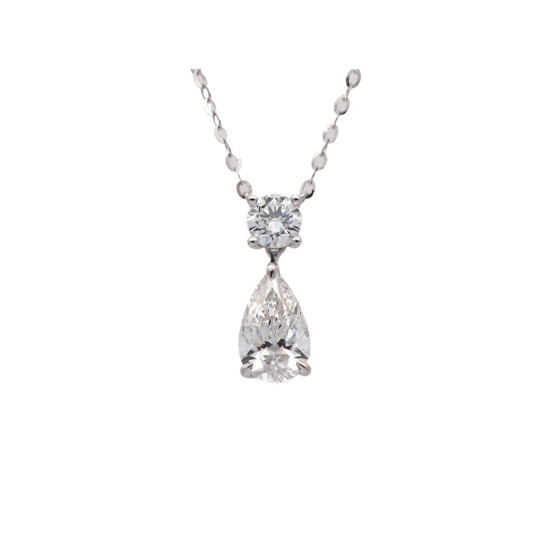 This stunning pendant features a teardrop-shaped Lab Grown Diamond paired with a brilliant round Lab...