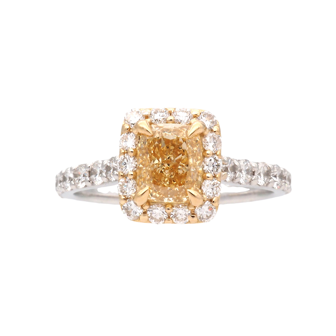 Yellow Cushion Cut Lab-Grown Diamond Halo Ring