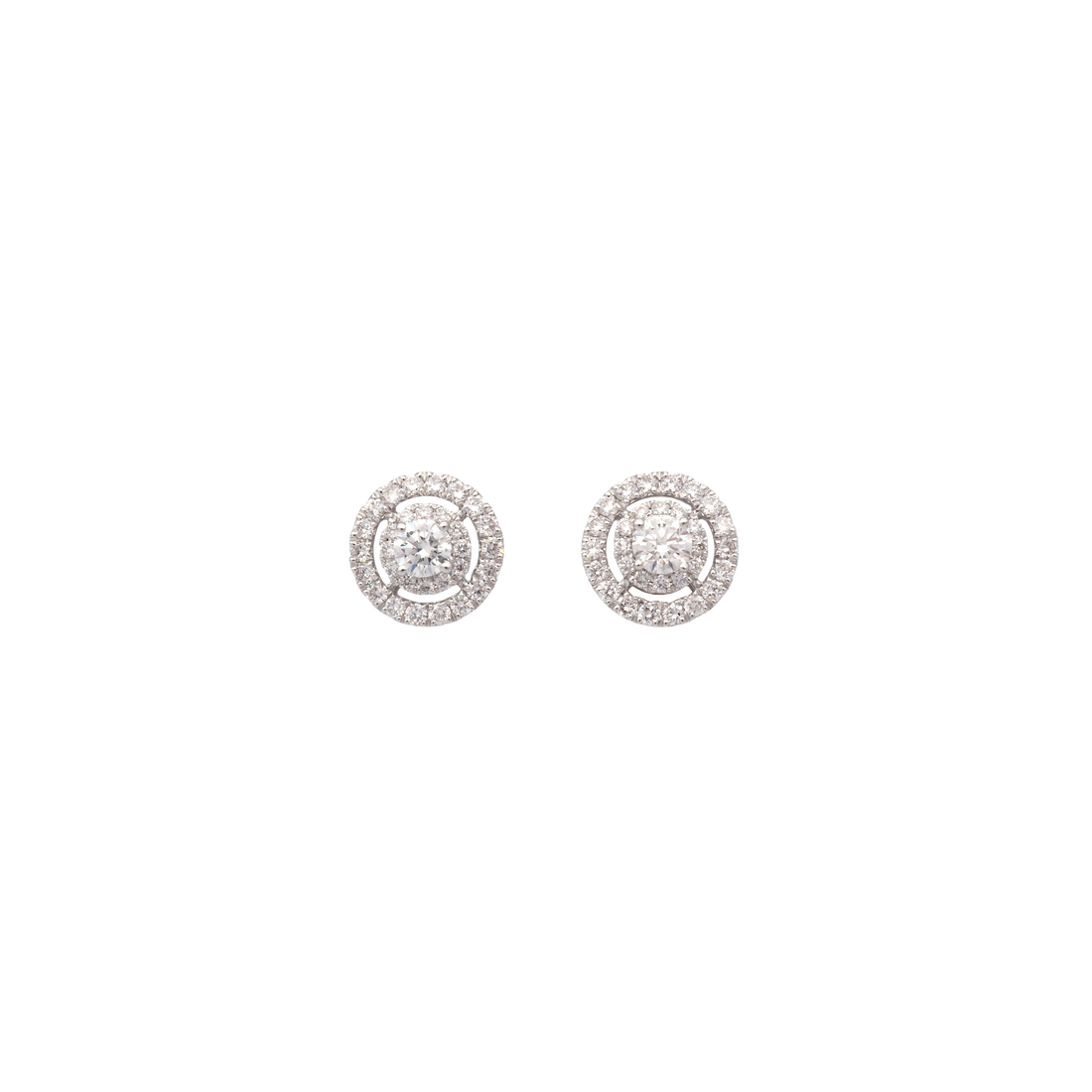 These elegant round halo earrings feature Lab Grown Diamonds totaling 1.26 carats, set in a...