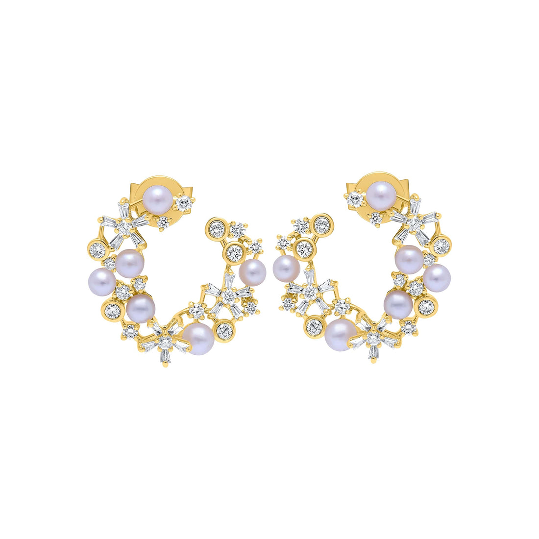 Dolce Mondo presents the 18K Diamond Earring "Pearl" in luxurious yellow gold. Adorned with 4.91...