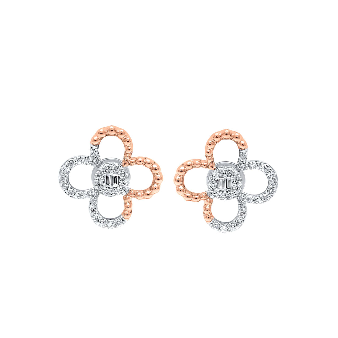 Elegant Fusion 18K White Gold and Rose Gold Dia Earring