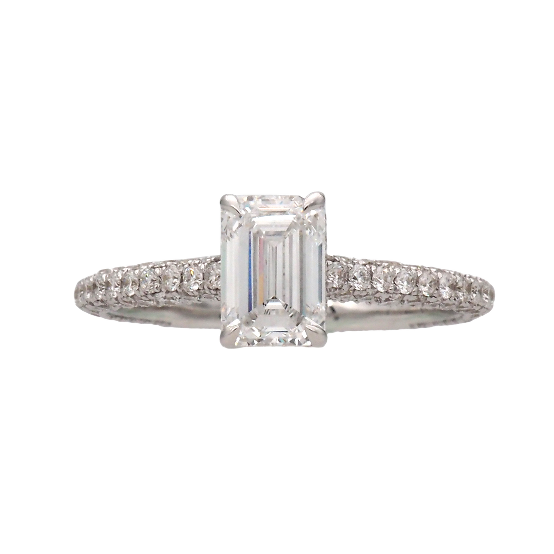 This stunning ring features a dazzling emerald-cut lab-grown diamond set at the center, beautifully surrounded...