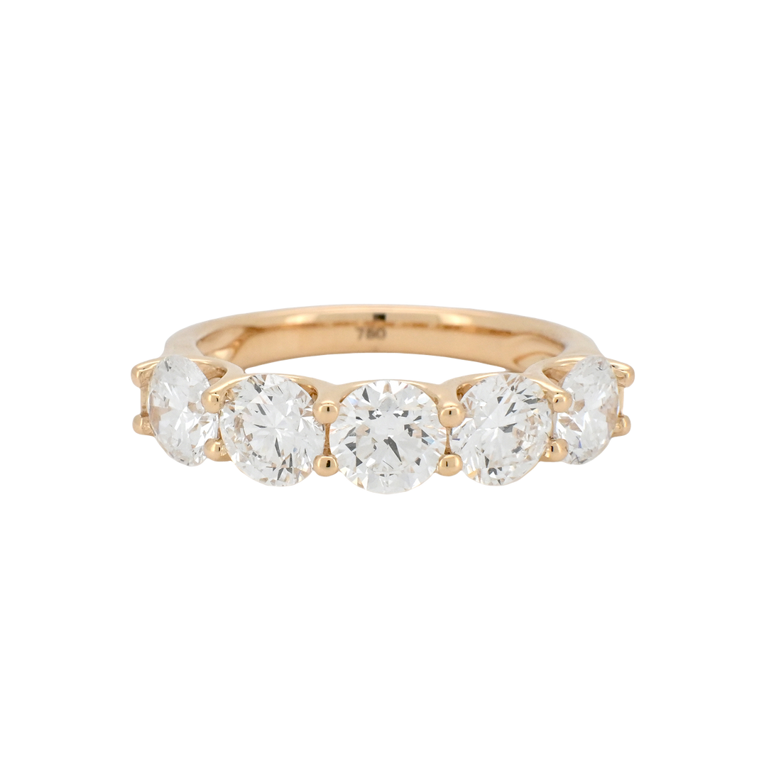 A sophisticated band crafted in warm gold, featuring a stunning row of mixed-cut lab grown...