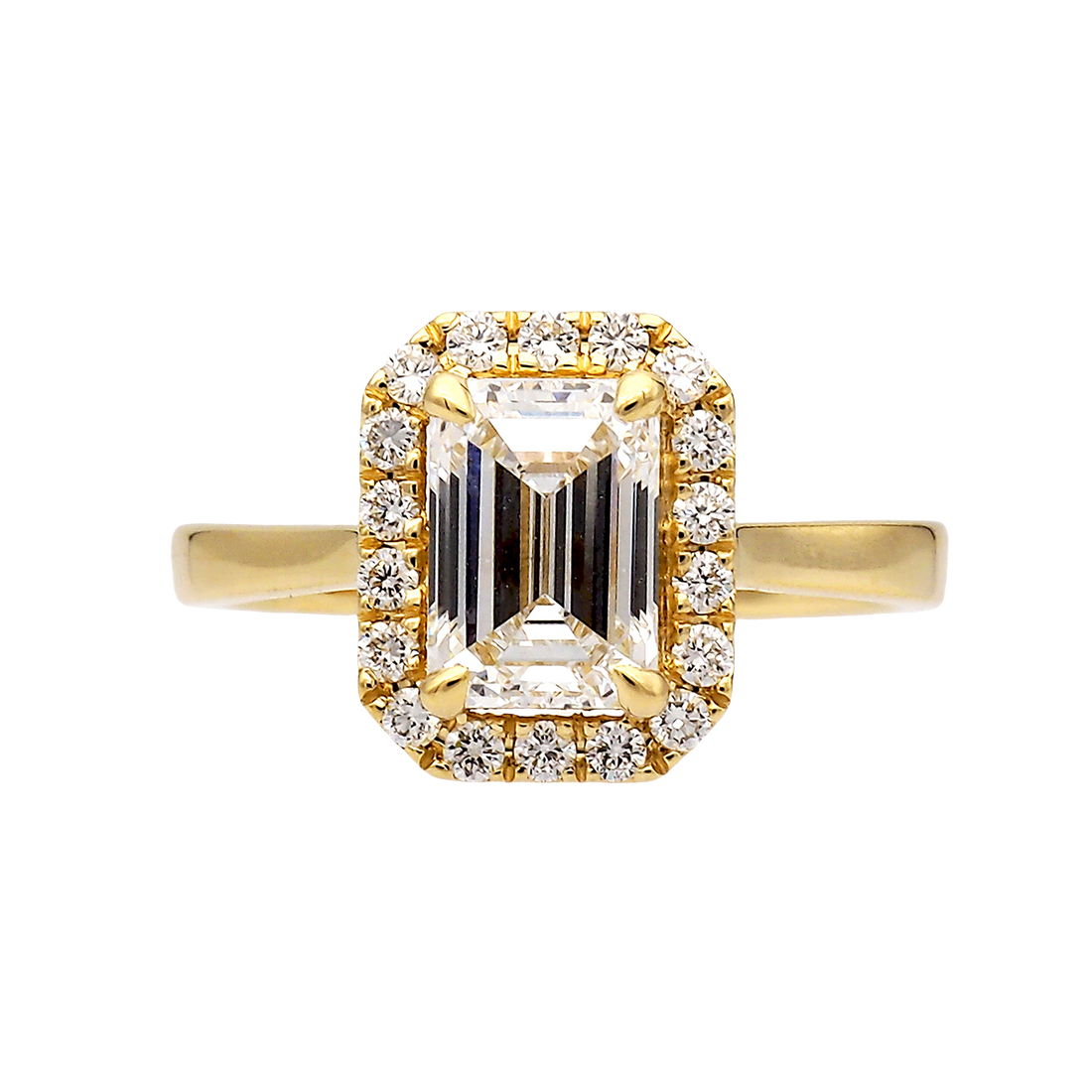 Emerald Cut Lab-Grown Diamond Halo Ring in Yellow Gold