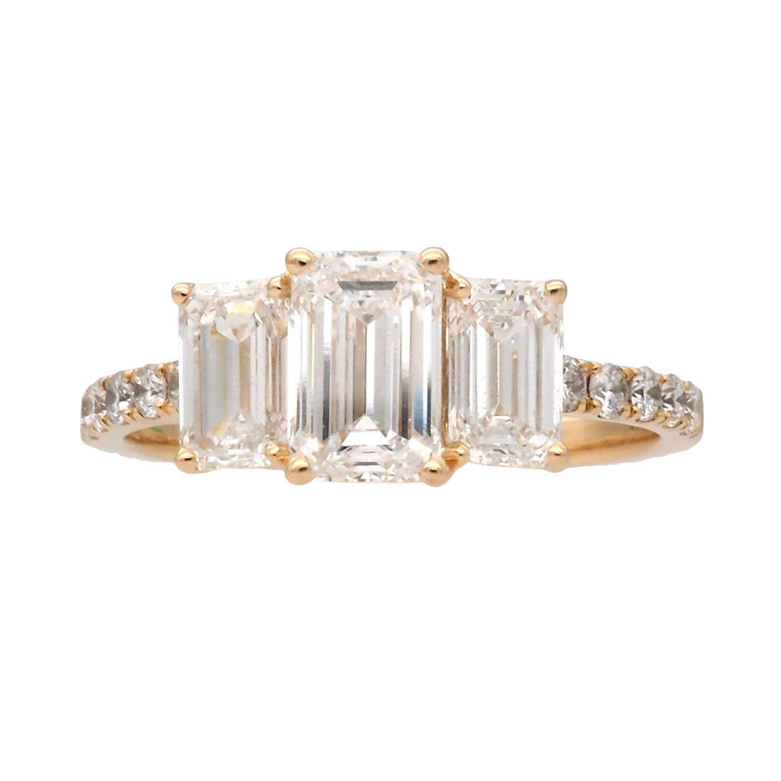 Elegant Three-Stone Emerald Cut Lab-Grown Diamond Ring