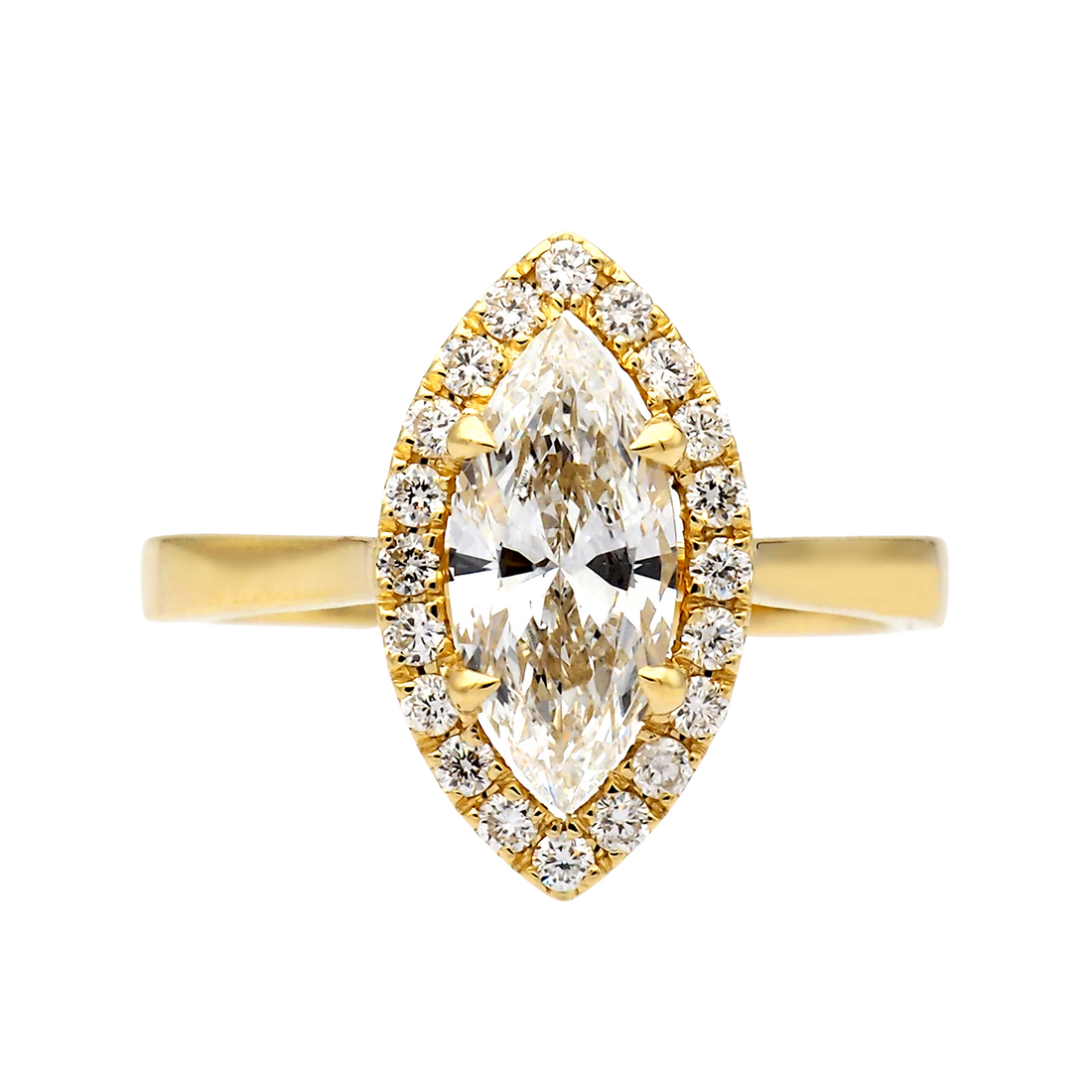 Marquise Cut Lab-Grown Diamond Halo Ring in Yellow Gold