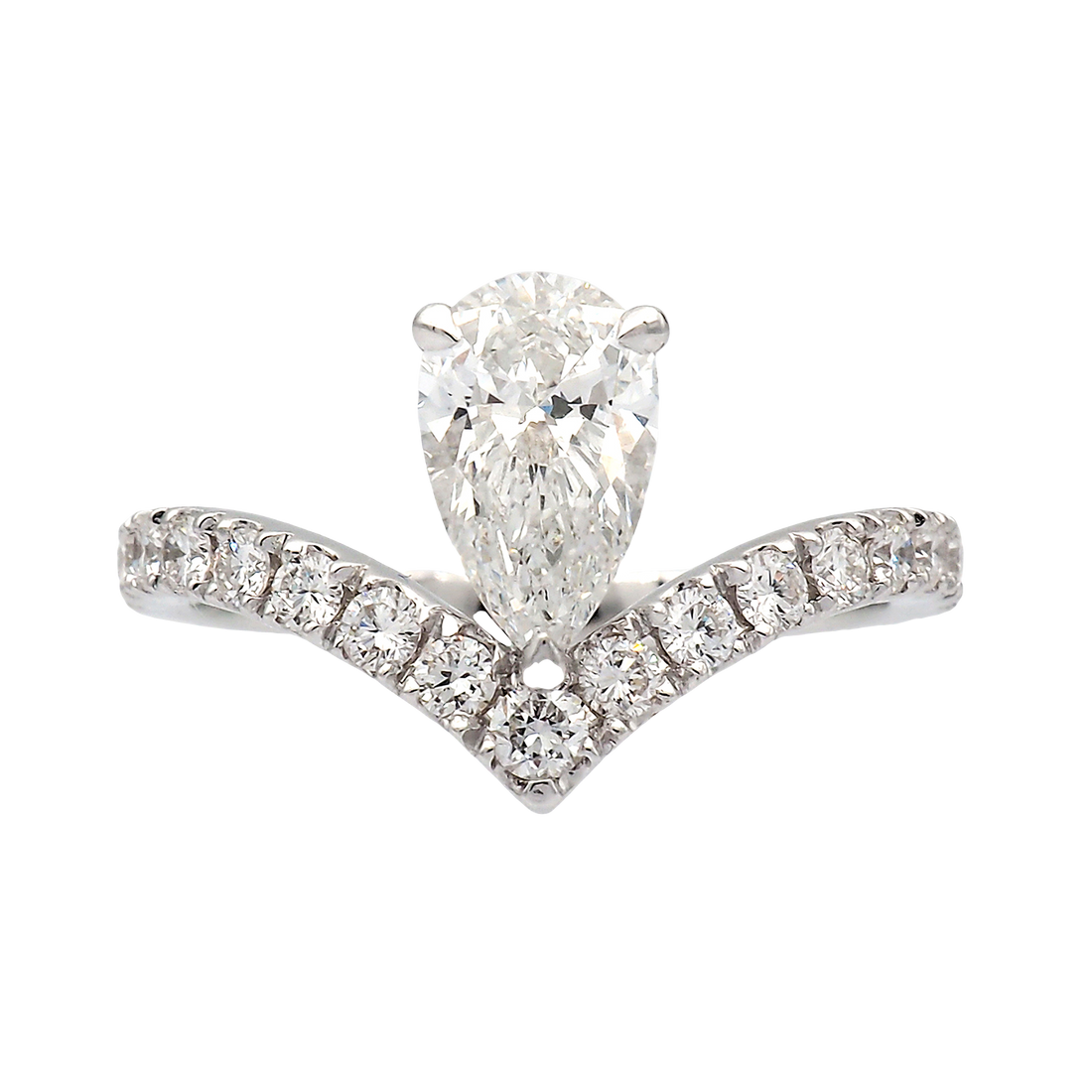 Pear Shape Lab-Grown Diamond V-Shape Ring in White Gold