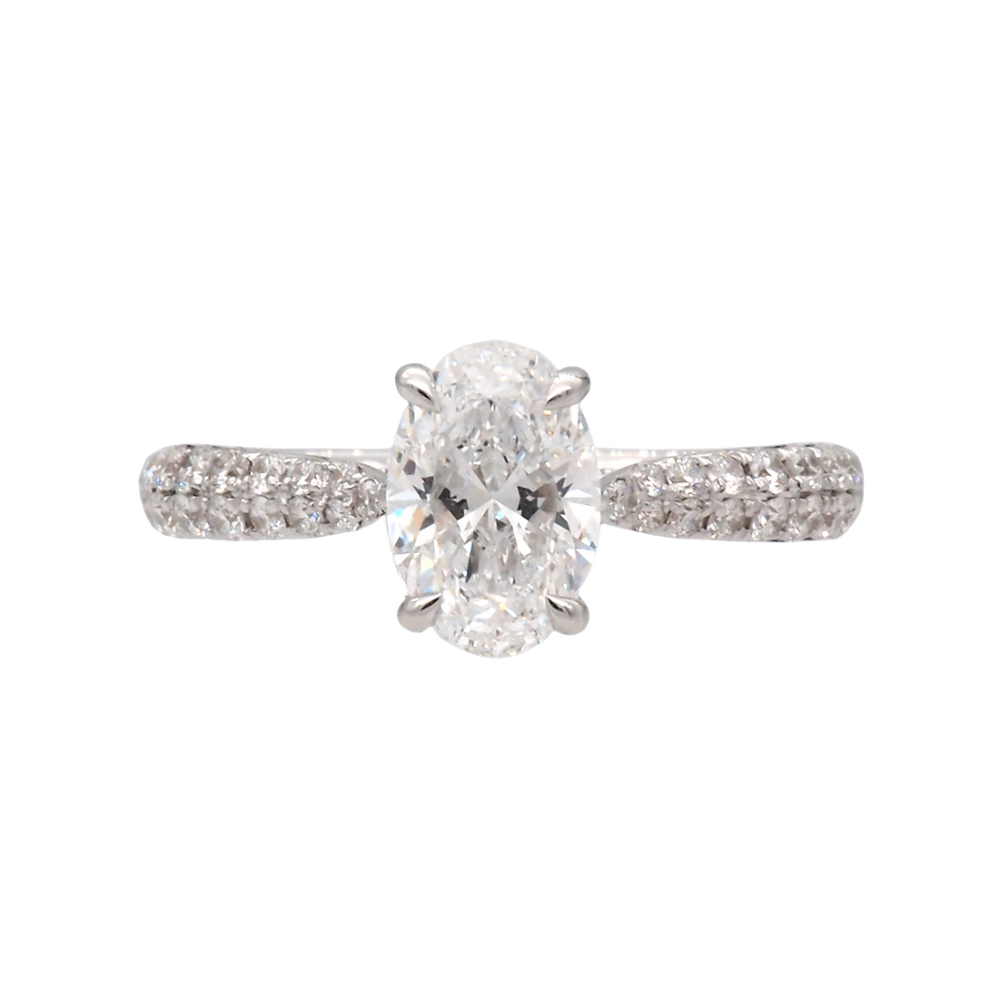 Oval Lab-Grown Diamond Solitaire Ring with Pavรฉ Band in White Gold