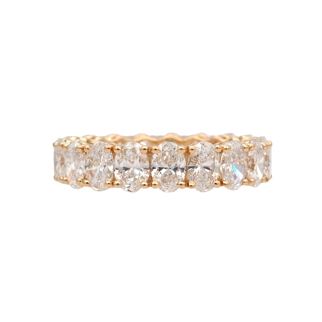 A breathtaking 18K yellow gold eternity band adorned with lab-grown oval diamonds totaling 4.75 carats....