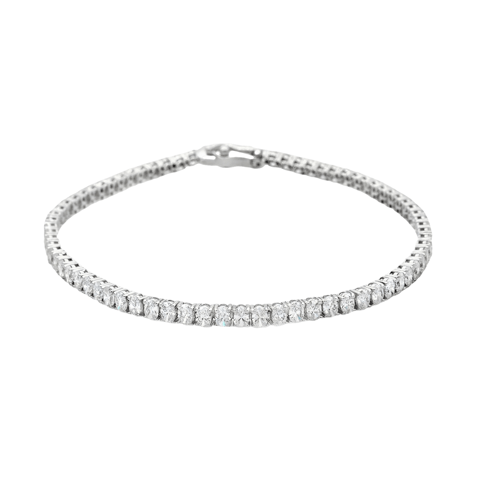 Elegant tennis bracelet crafted in 18K white gold featuring 3.75 carats of sparkling lab-grown diamonds. Weighing 9.75 grams, this timeless design offers a perfect blend of brilliance and sophistication