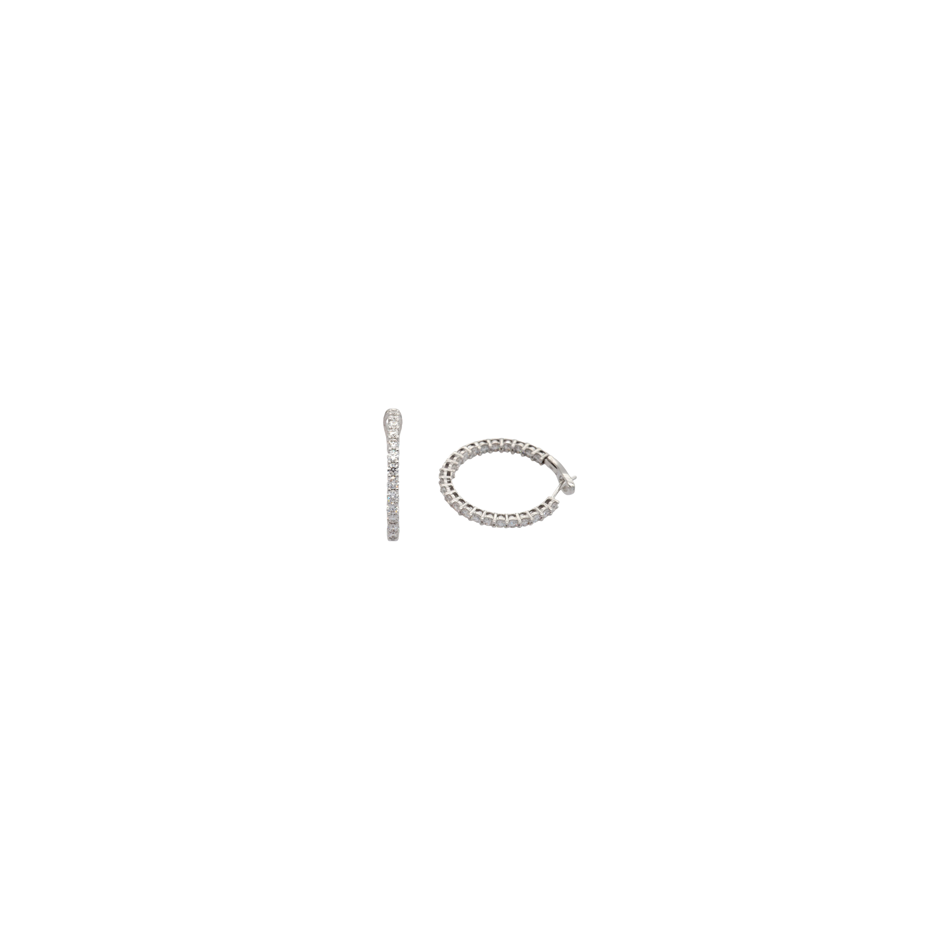 These stunning hoop earrings feature brilliant lab grown diamonds totaling 2.28 carats, elegantly set in 18K white gold. With a total weight of 6.46 grams, they offer a luxurious sparkle and timeless sophistication