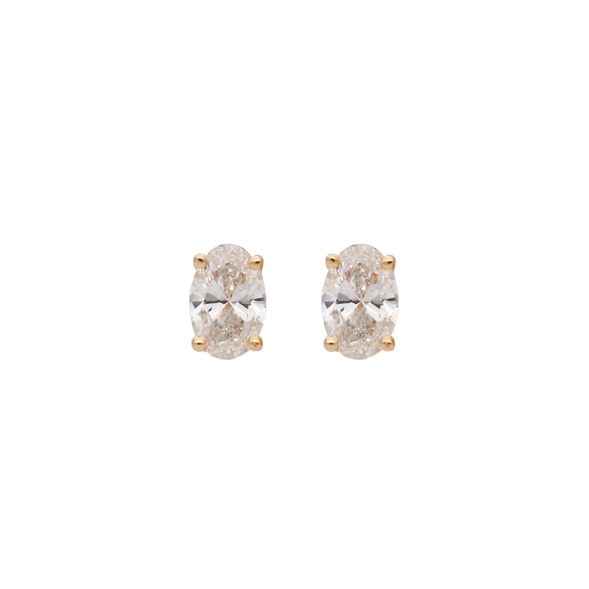 These exquisite Lab Grown Diamond earrings feature stunning oval-cut diamonds set in a refined yellow gold setting. Total weight 2.05 grams, 1.00 carat diamonds, priced at