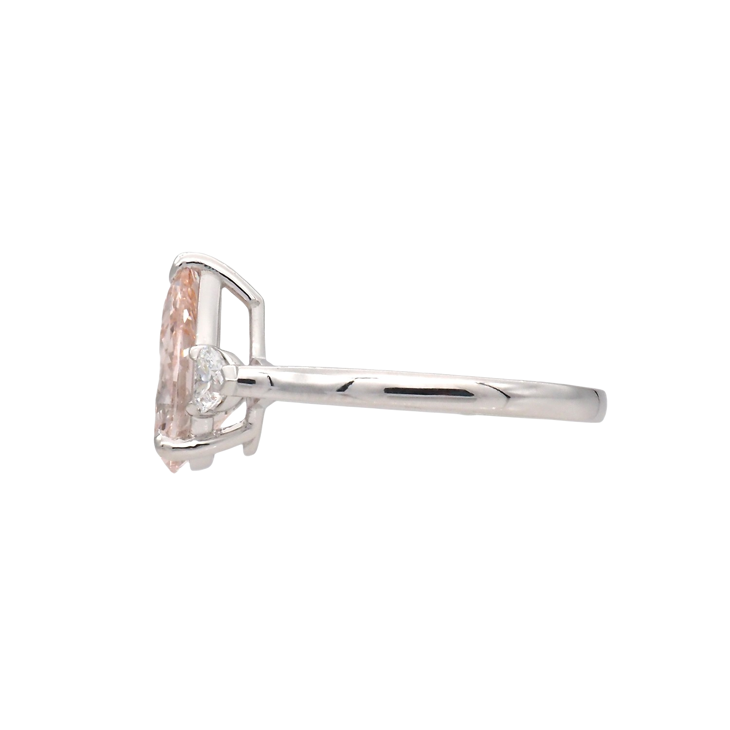 This stunning ring features a pear-shaped lab grown diamond center accented by two sparkling side stones. Crafted in premium 18K white gold, it weighs a total of 3.9g with 3.00ct of lab grown diamonds. Perfect for those who desire elegance with a modern touch