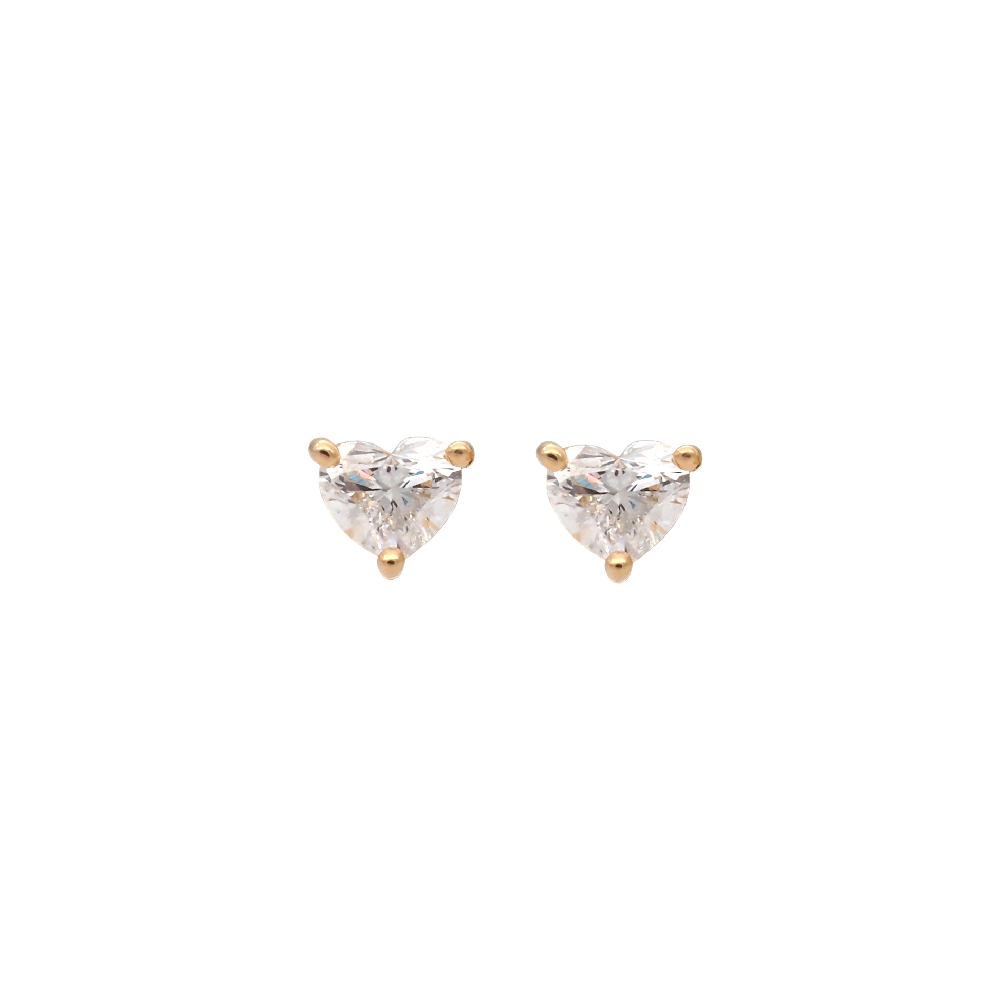 Elegant heart cut stud earrings featuring lab grown diamonds with a total weight of 1.75g and 0.50ct diamond weight. Set in 18K yellow gold for a timeless romantic look