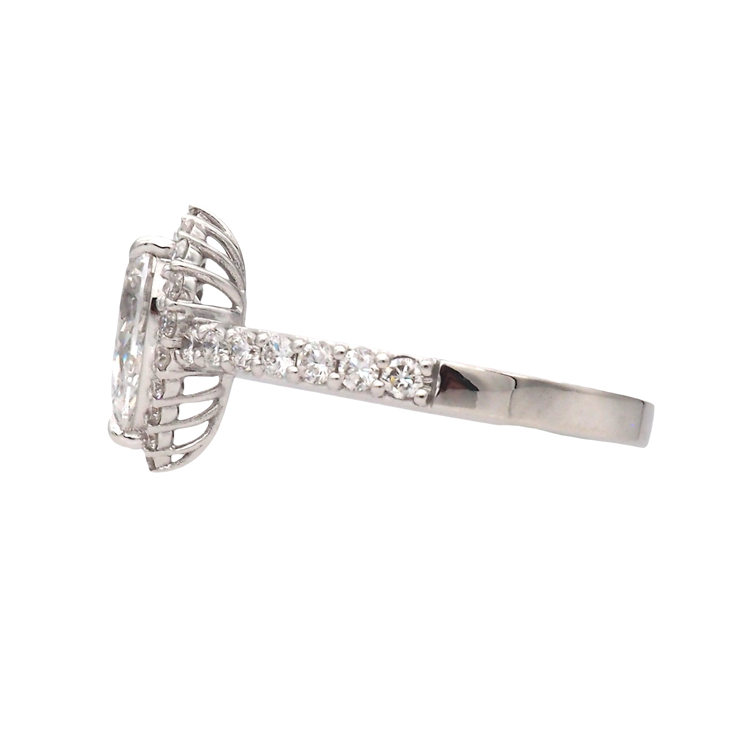 Pear Shape Lab-Grown Diamond Halo Ring in White Gold